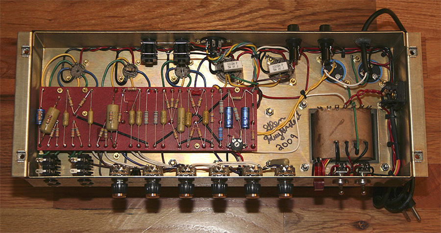 Inside my Metro 50 w/ NOS mustards & NOS LCR PS caps, Merren OT, Marstan PT. Sounds great! |